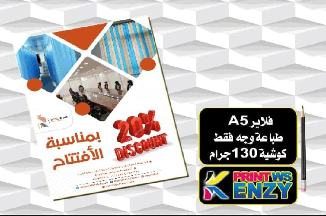 فلايرA5{15☆20 cm} طباعه ٤ لون وجه فقط ورق كوشيه130جرام